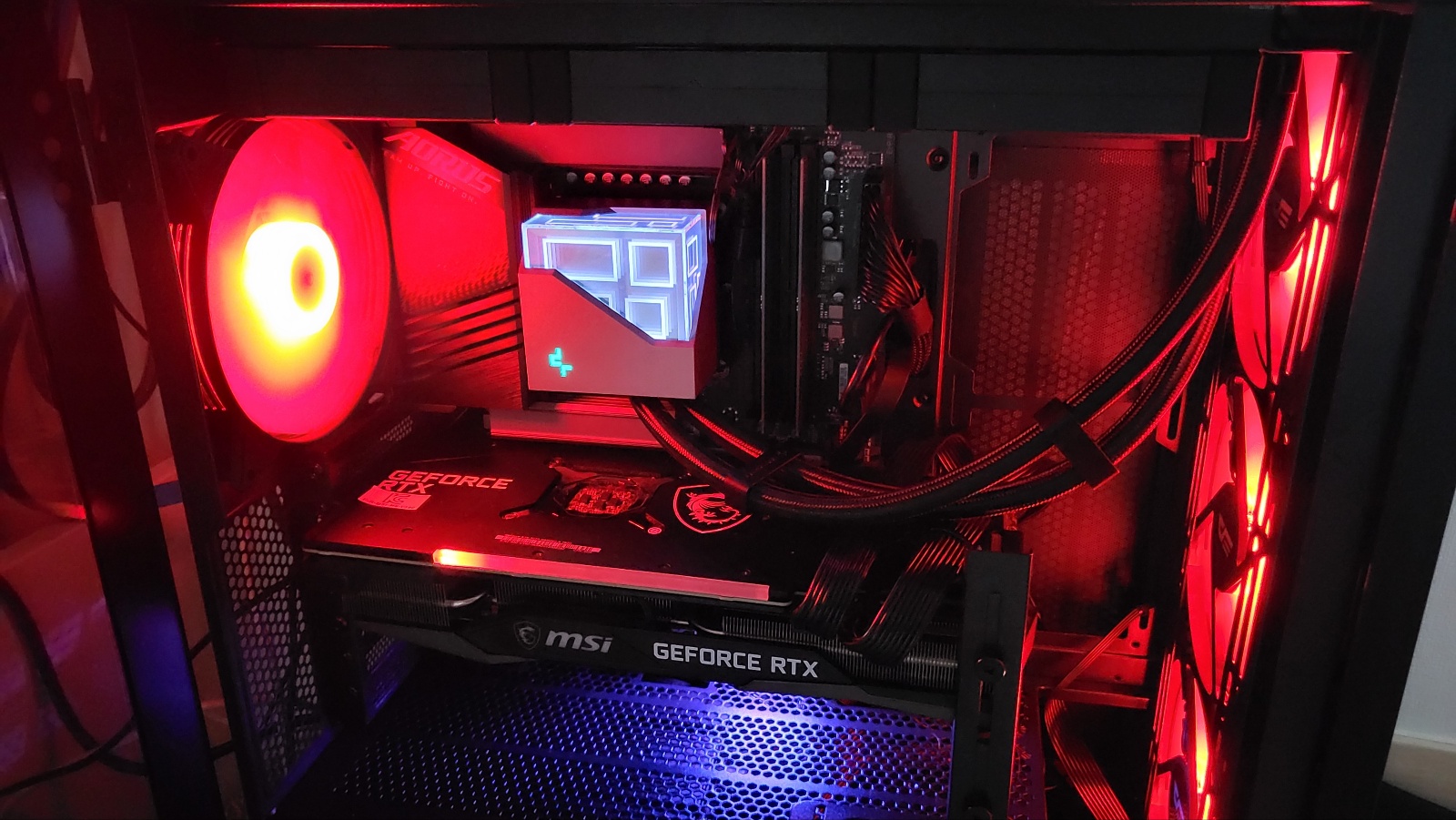 시네벤치 구동 기준 약 31000점. 테스트중엔 포터블 모니터를 상단 라디에이터 위에 올려놔서 74도가 찍혔고